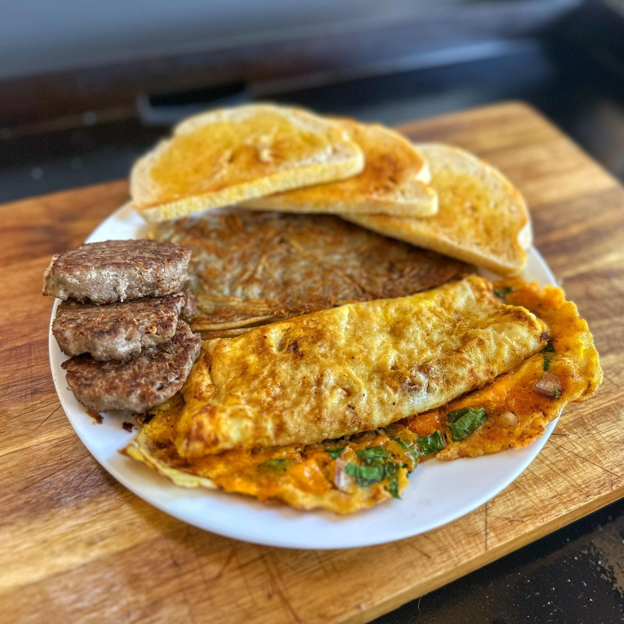 The Cheese Omelette Platter is a go-to brunch item for those who love simplicity and comfort.