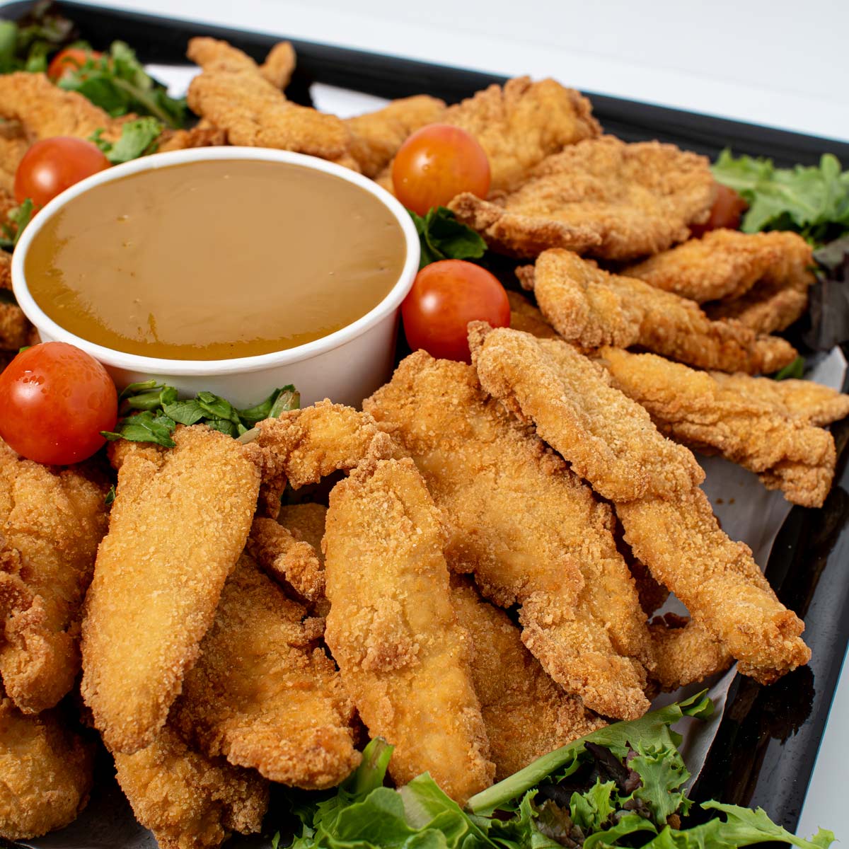 Hand-breaded daily and fried until golden brown, the Chicken Tenders are crunchy outside and juicy inside.